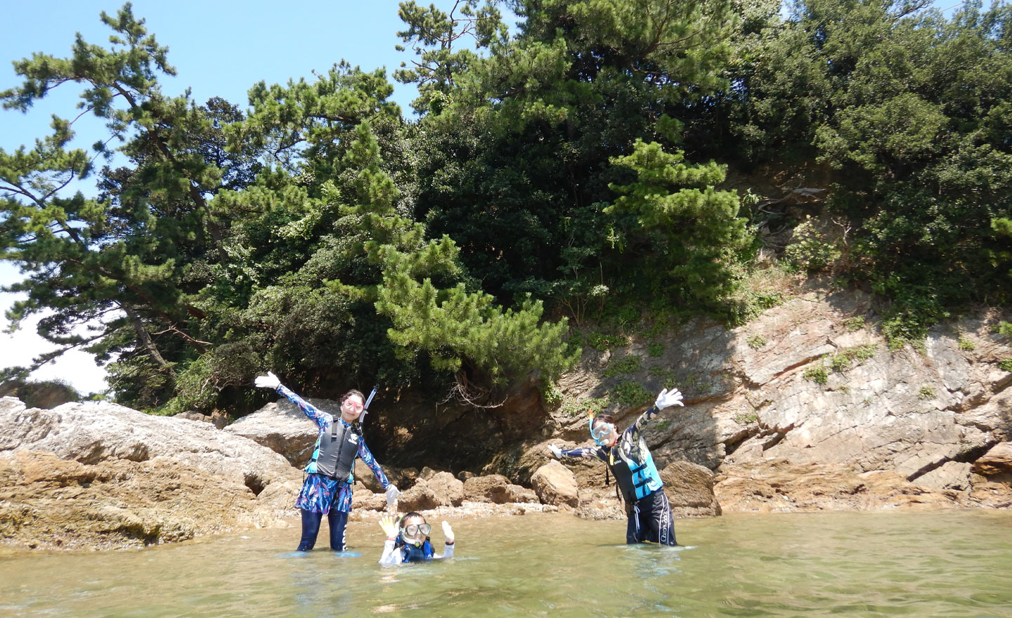 | 服装 | マリンシューズ (サンダルは不可) ・帽子 ・水着・スパッツ(足首まであるもの)ラッシュガード(長袖) ※マリンシューズ、ラッシュガード・スパッツのレンタル(無料)あり ・ご希望の方はご事前にサイズをお知らせください。 ・マリンシューズは靴のサイズをお知らせください。16cm~30cmまで1cm刻みでご用意しています。 ・ラッシュガード・スパッツは洋服のサイズをお知らせください。 ※服装のイメージを下記に掲載しています。 |